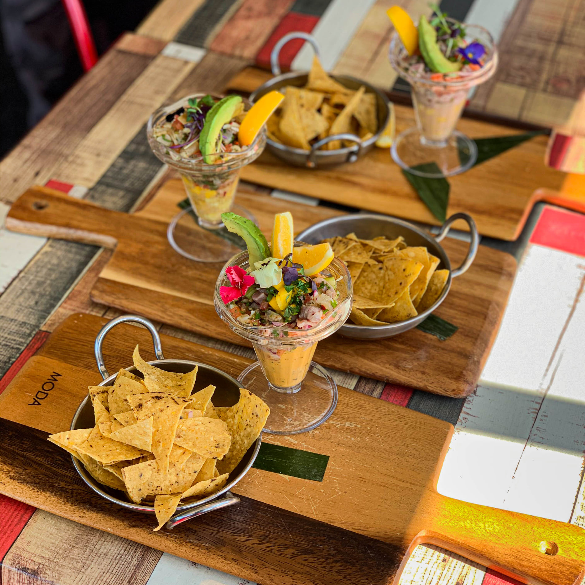 Coast artist Erika Pearce, who painted the much-loved mural in the original cantina, has done another colourful wall for the new restaurant, which also features artwork from local Brazilian artist Noila Souza.